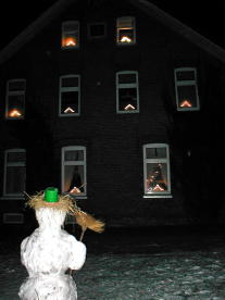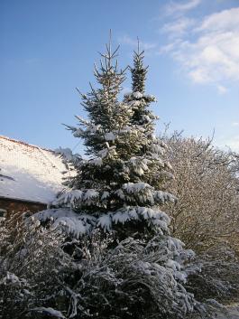 Unser Hof in der Weihnachtszeit:aus der Ferne sieht er aus wie ein riesiger Tannenbaum